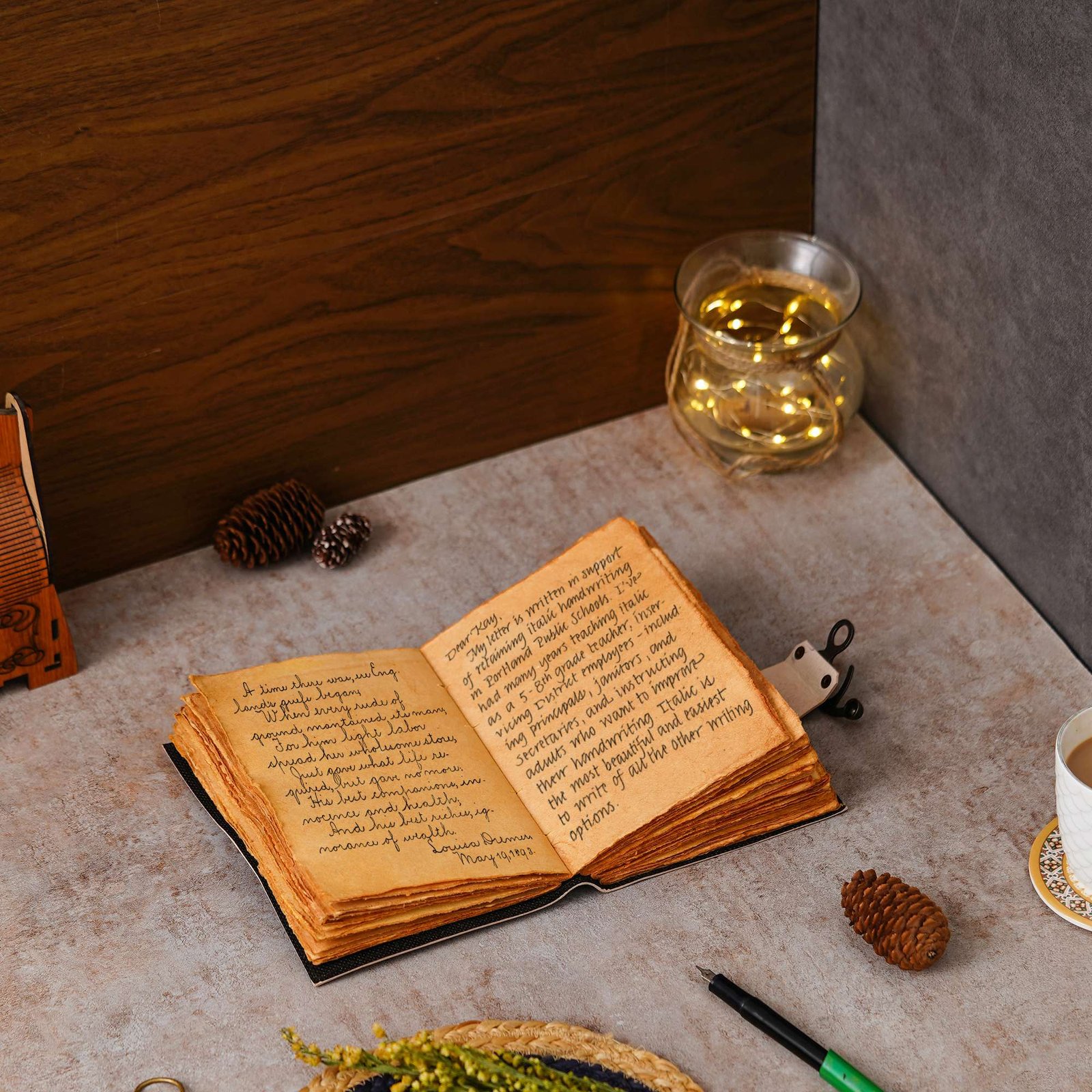vintage handmade leather journal. Crafted with genuine leather, it radiates authenticity and charm, perfect for those who appreciate classic craftsmanship. The premium antique lock closure adds a touch of elegance and security, ensuring your thoughts and memories are safeguarded within its pages. Inside, you’ll discover 200 brown handmade pages, providing ample space for your musings, sketches, and stories to unfold. Whether it’s for journaling, sketching, or planning, this versatile journal is a timeless companion for your creative endeavors. Treat yourself or a loved one to this exquisite piece, a celebration of tradition and creativity
